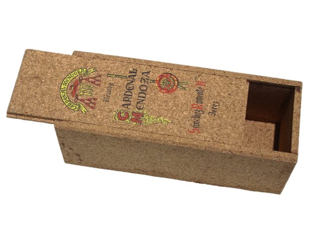La capsa de suro aglomerat per al brandi Cardenal Mendoza, produït pel celler Sánchez Romate Hnos. de Jerez.