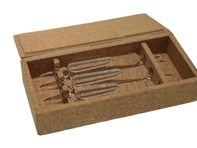 Les capses per a productes farmacèutics van ser els primers articles comercialitzats per la casa de suro aglomerat Productos del Corcho Aglomerado.