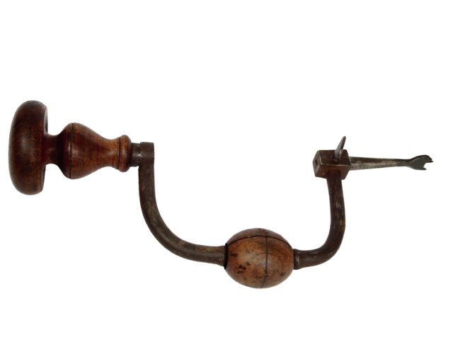 Es fixava la punta de la broca, i s’empenyia tot agafant amb una mà el pom de l’eina mentre amb l’altra mà es feia giravoltar la manovella.